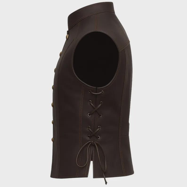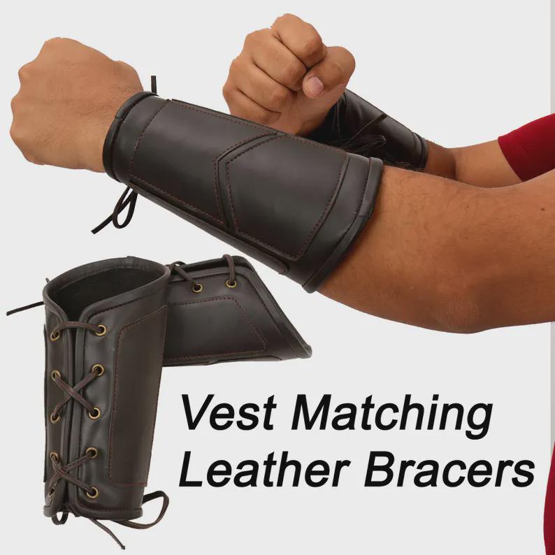 PeterSign Hand Crafted Mens Vintage Renaissance Leather Vest | Medieval Brown Leather Vest with Matching Leather Bracers