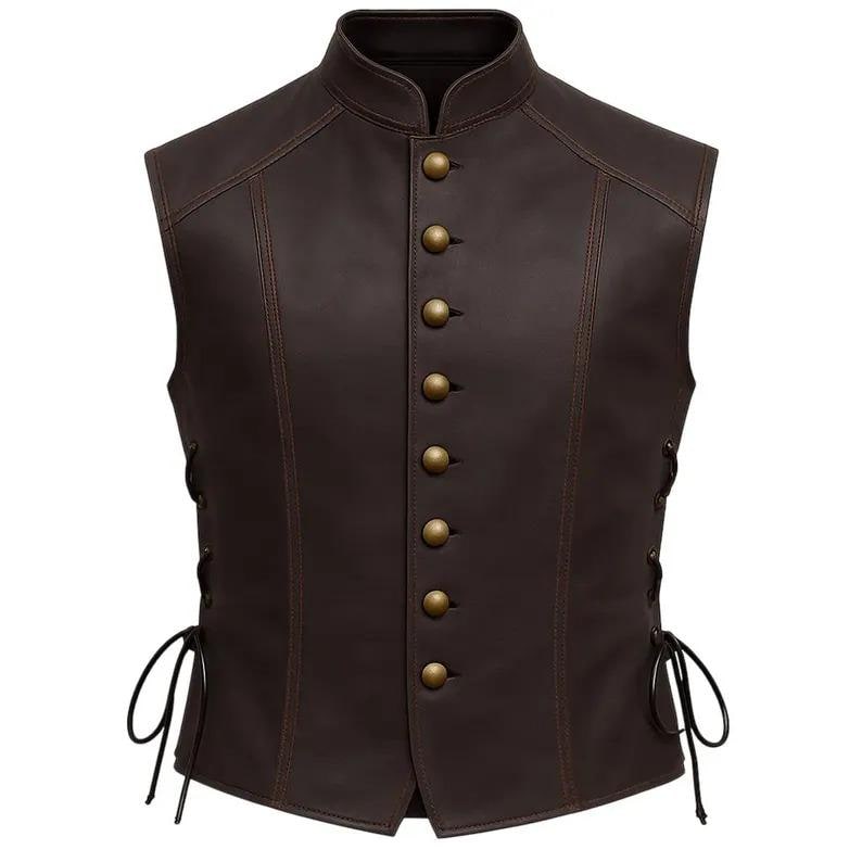 Hand Crafted Mens Leather Vest | Vintage Renaissance Style